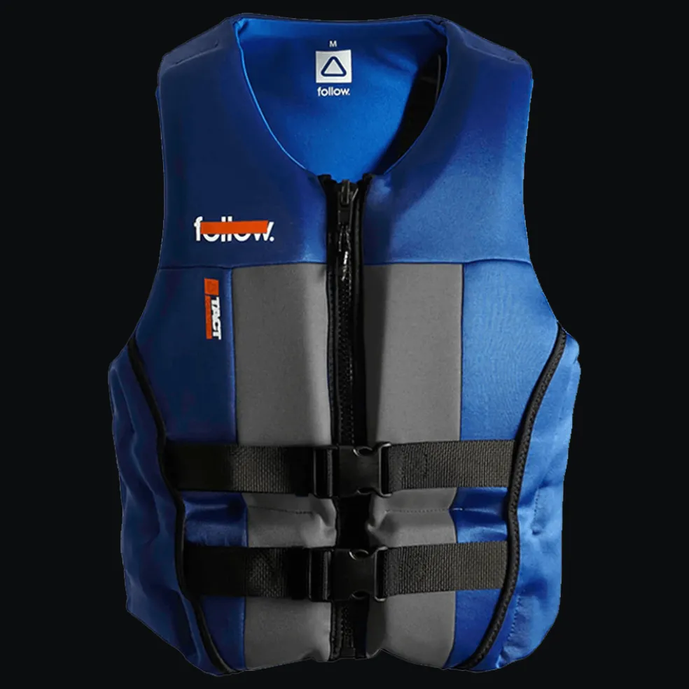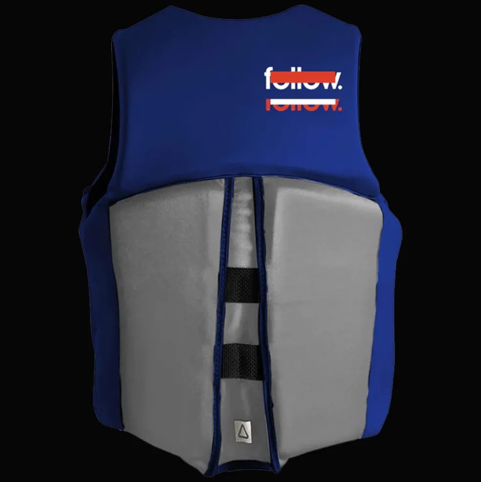 Wet neoprene increases in size by roughly 10%, depending on thickness and materials. Follow uses both external and internal neoprene layers to minimize this effect. Dual Layer neoprene keeps the vest fitting as intended and helps to reduce chest expansion in the water.