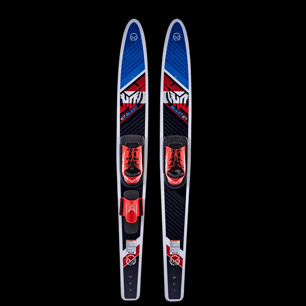 The HO Blast Combo Waterskis are a great way to have fun with the whole family at the lake. Their wide width construction make for easy starts and help skier progress. Combined with a V-Bottom design, the Blast Combos are stable and fun. You can also learn to drop a ski and progress to slalom skiing, as they’re equipped with a rear toe strap. Waterskiing is a great way to have fun with the whole family at the lake. They feature tip inserts compatible with the HO Trainer bar that keeps ski tips together, making starting and learning easy.