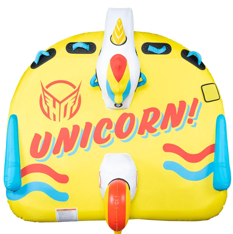 The Unicorn is a 3 rider towable tube built for fun days on the lake. The Unicorn can handle up to 3 riders but it can be ridden by 1, 2 or 3. The center rider sits on the deck of the tube while the outside riders lay in the prone position. Built with only the finest materials and guaranteed with our 1 year warranty, this tube will keep you where you want to be…on the water.