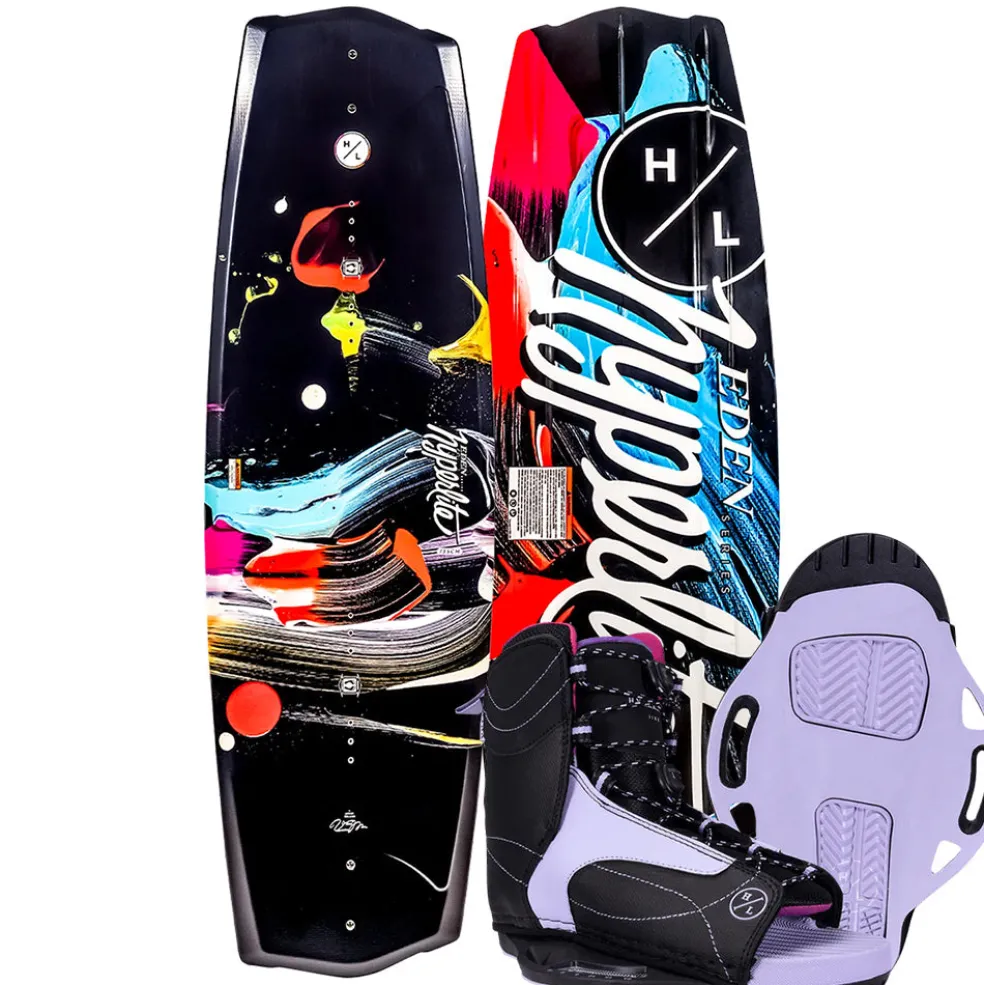Creating a junior girl’s shape to take riders’ skills to the next level was the goal behind the Eden Jr. Learning from other asymmetrical designs, we found that creating a shorter, more effective edge on a rider’s toe-side makes learning toe-side wake jumps a lot easier. This is because there is less rail to initiate when applying toe-side pressure. Once set, the smoother toe-side transition is then held by the Eden Jr.’s thinner profile molded-in fins, creating less drag and a better release off the top of the wake. Subtle Molded-In Toe-Side Footbed Risers were also added to help a rider create more leverage when pressure is applied. The longer, more traditional heel-side edge complements this asymmetrical design by allowing the natural body position of a rider to generate stability and speed into the wake without a loss of pop due to reduced surface area. The Eden Jr. has been tested and proven to be the best choice for a rider looking to master the foundations of wakeboarding.