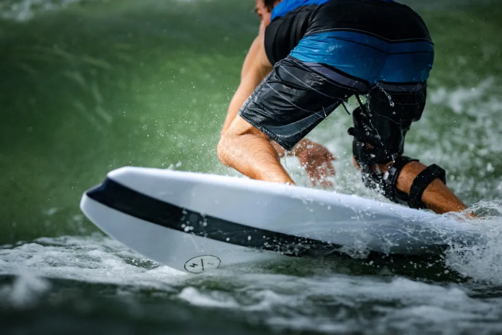Introducing the NEW MOAB Wakesurfer, the Joey Harris Pro Model, designed for an exceptional ride. Handcrafted with durable epoxy EPS wood and stringer construction, this board features a deep concave for unparalleled drive and control. Reverse channels in the tail help speed water past the fin, allowing for a looser tail and enhanced maneuverability, while the large grab rail ensures easy handling.