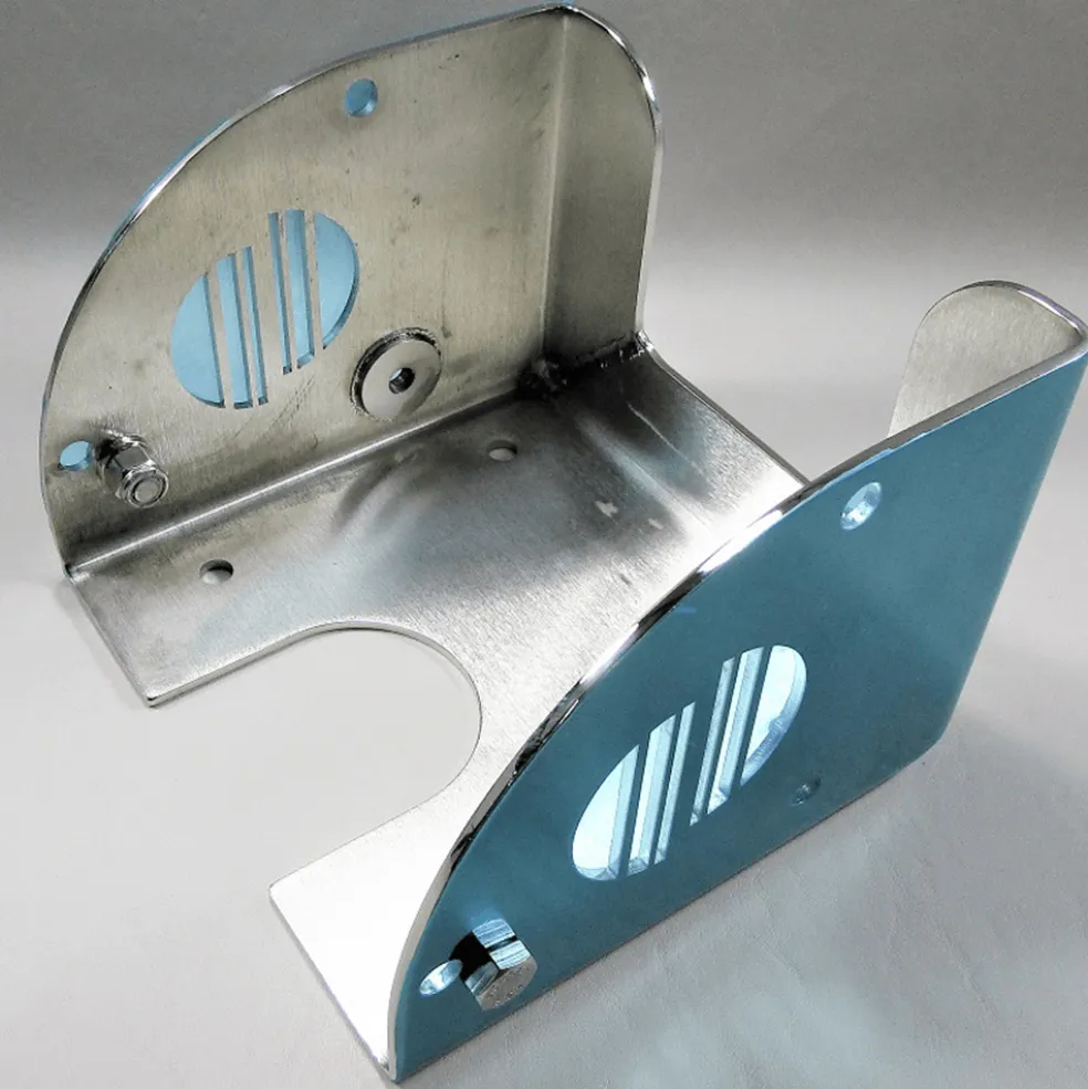 Stainless bracket for the manual floating wedge that is fastened to the transom of the boat. The wedge foil is then bolted onto this bracket