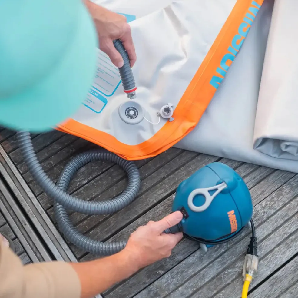 Our 120v AC high-volume, medium-pressure electric air pump fills your inflatables to 3-4 PSI at super speeds.