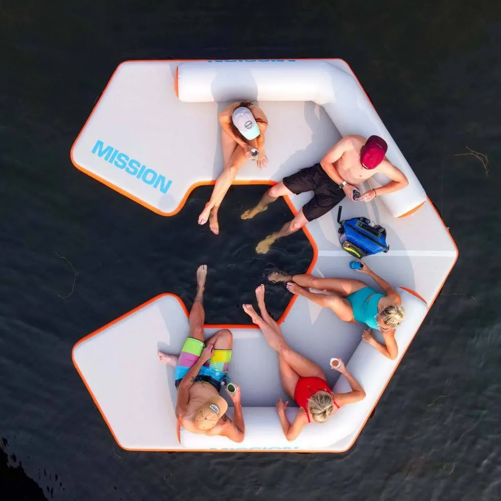 Mission Reef Mats are some of the best in the industry! The REEF HEX comfortably accommodates 5+ adults, so you can move the full party out onto the water and under the sun. Stand, jump, climb, and play around all day long without ever worrying it’ll sink, bend, flip or deflate on the mission reef mat. Super rigid, yet soft on your toes. REEF Inflatable Mats will change the way you and your friends experience hot summer days on the water. Unlike floppy foam mats, REEF’s rigid construction refuses to submerge, leaving you limitless possibilities on top of the water. Super stable and easily stowed in most boat storage lockers. MISSION makes lake fun easier than ever. Thoughtfully designed by guys who’ve been there, done that, and figured out how to do it better. They sweat the small stuff, like storage bags, pumps, handles, so you can just get out on the water.
