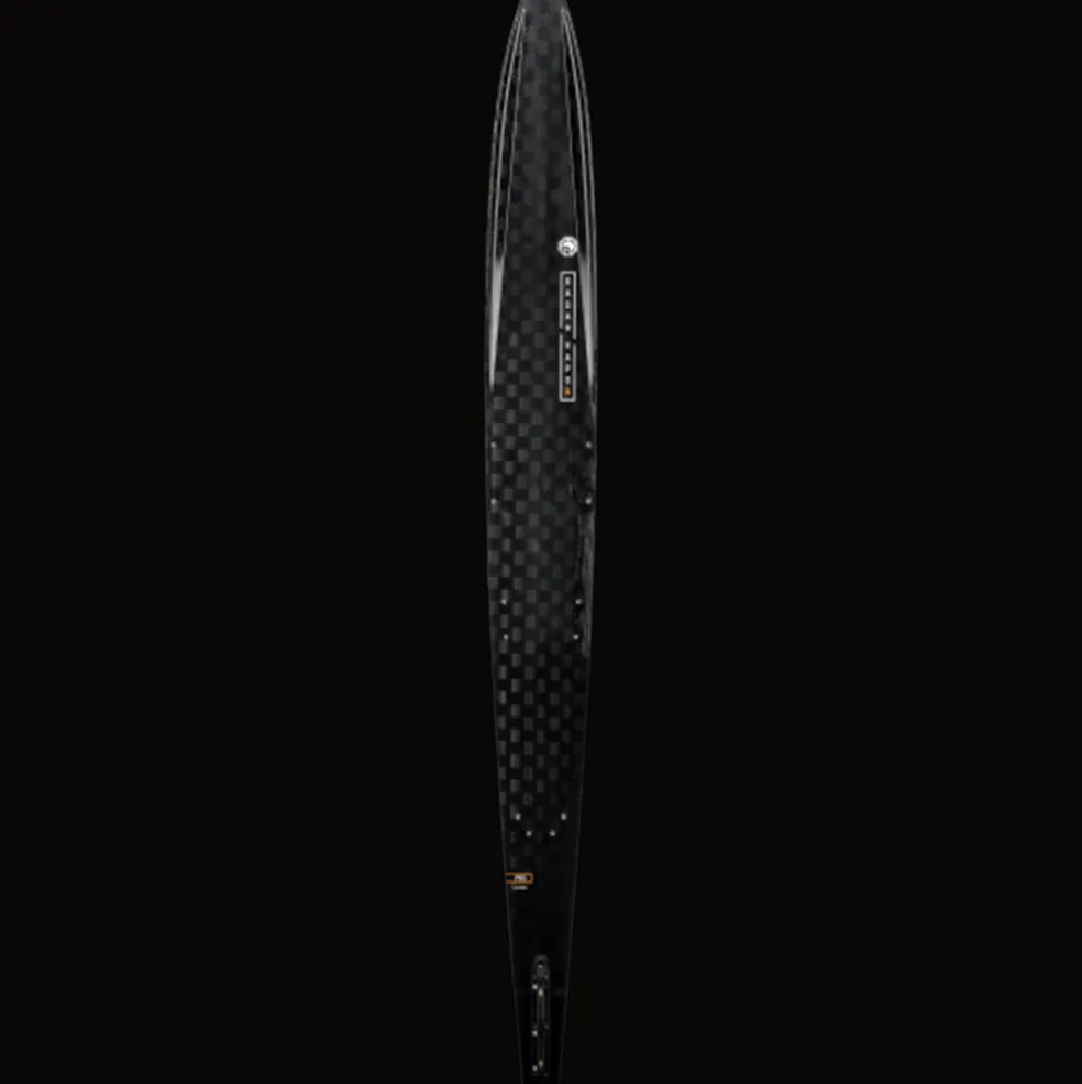 The additional concave depth running throughout the bottom of the ski is one of the most noticeable differences in this new shape. This channels more water directionally from tip to tail, resulting in significantly more side-to-side drive and holding power. More drive and hold allow a skier to be faster as they near centerline which results in a more up-course path. Another result from an increased concave is increased pressure on the bevels, allowing the ski to feel extremely connected to the water. This gives a skier the freedom to control the path of the ski with more ease.