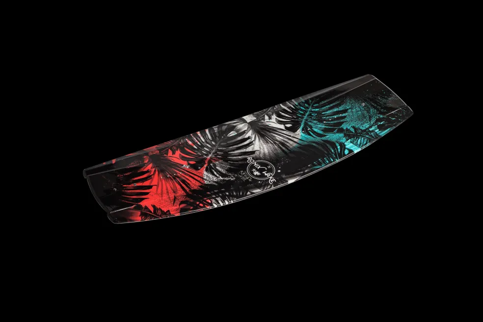 An exaggerated rocker line with a later arc and a higher degree provide a more straight up explosive pop. This style of rocker creates more of an instant explosive buck off the wake for riders that go behind a big boat wake.