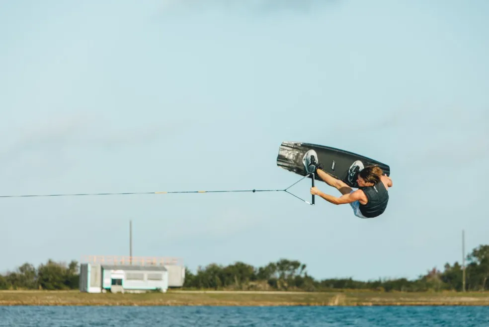 An exaggerated rocker line with a later arc and a higher degree provide a more straight up explosive pop. This style of rocker creates more of an instant explosive buck off the wake for riders that go behind a big boat wake.