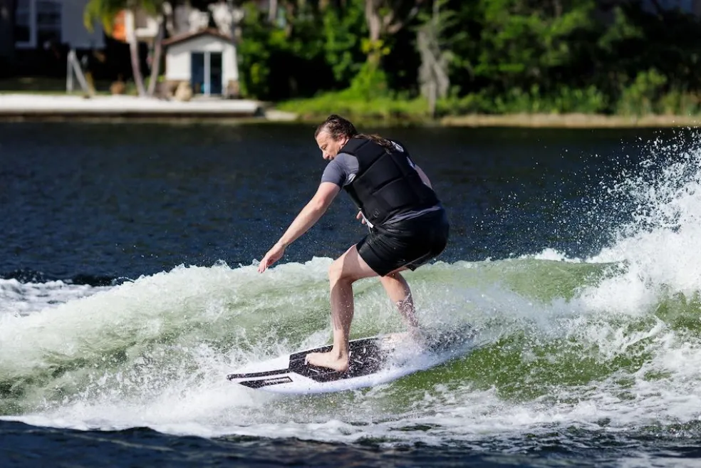 Bigger rider looking to toss some performance driven buckets? We are so excited to unveil this new Wave King series with a test team of riders up to 300 lbs. riding either this more powerful cutback surf version or the easier-to-360 skimmer model. A smooth floaty rail and fast rockerline inspired by one of our favorite ocean surfers we have made over the years, and most importantly, a volume to keep any size waterman locked in with the wave. Made in our lightweight Flyweight construction with our new super easy-to-use button fin system and three locked-in floating fins for a stable, mega-fast formidable new surfer. We have also had a lot of fun riding this shape without a boat in standing wave machines. This Wave King comes with a leash plug so you can ride your local river swell.