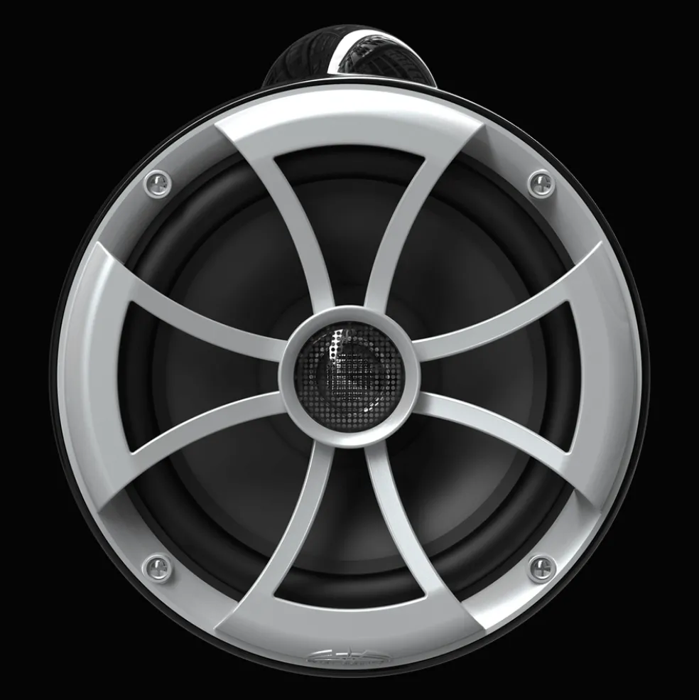 The ICON Series is an extreme performance tower speaker designed for those that crave a full mid bass sound and clean detailed highs in a small form factor. The ICON series are designed for full sound in and around the boat and wake surfing range. The ICON 8 utilizes an 8 inch continuous cone mid bass driver with a grille mounted pure 1 inch titanium tweeter in a smaller form factor housing size usually found with smaller 6.5 inch speakers. Supreme functionality with multiple universal clamp configurations.