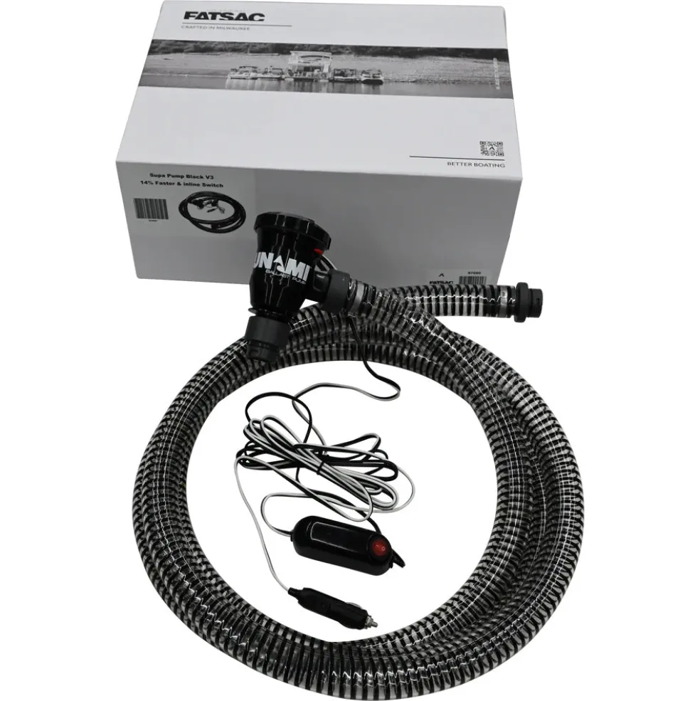 Super Fast! Super light weight easy to use over the boat pump! Now with an in-line on / off switch! Bigger hose for faster fills! Compatible with all FatSac bags!