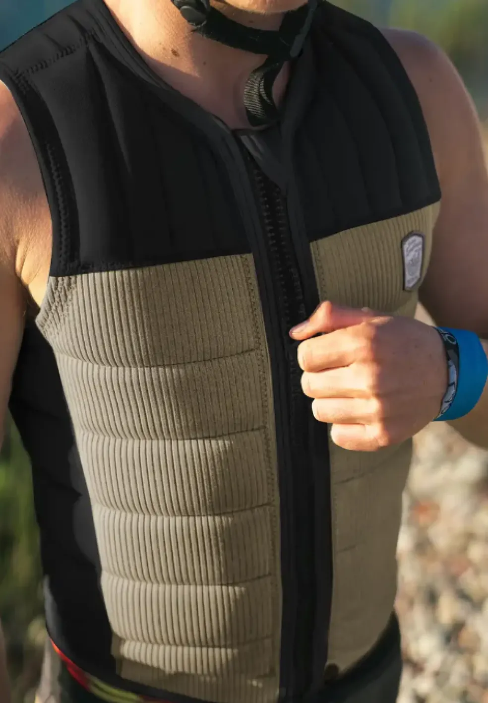Joe Battleday gets a new Employee of the Month badge. Black and Khaki a great colour way unique to this style in the follow range. Corduroy textured neoprene a material that’s been a team and customer favourite for years, something that when you touch you feel special, unique chest and back stitched details. A high end relax vest that appeals to a mass audience like Joey’s smile.