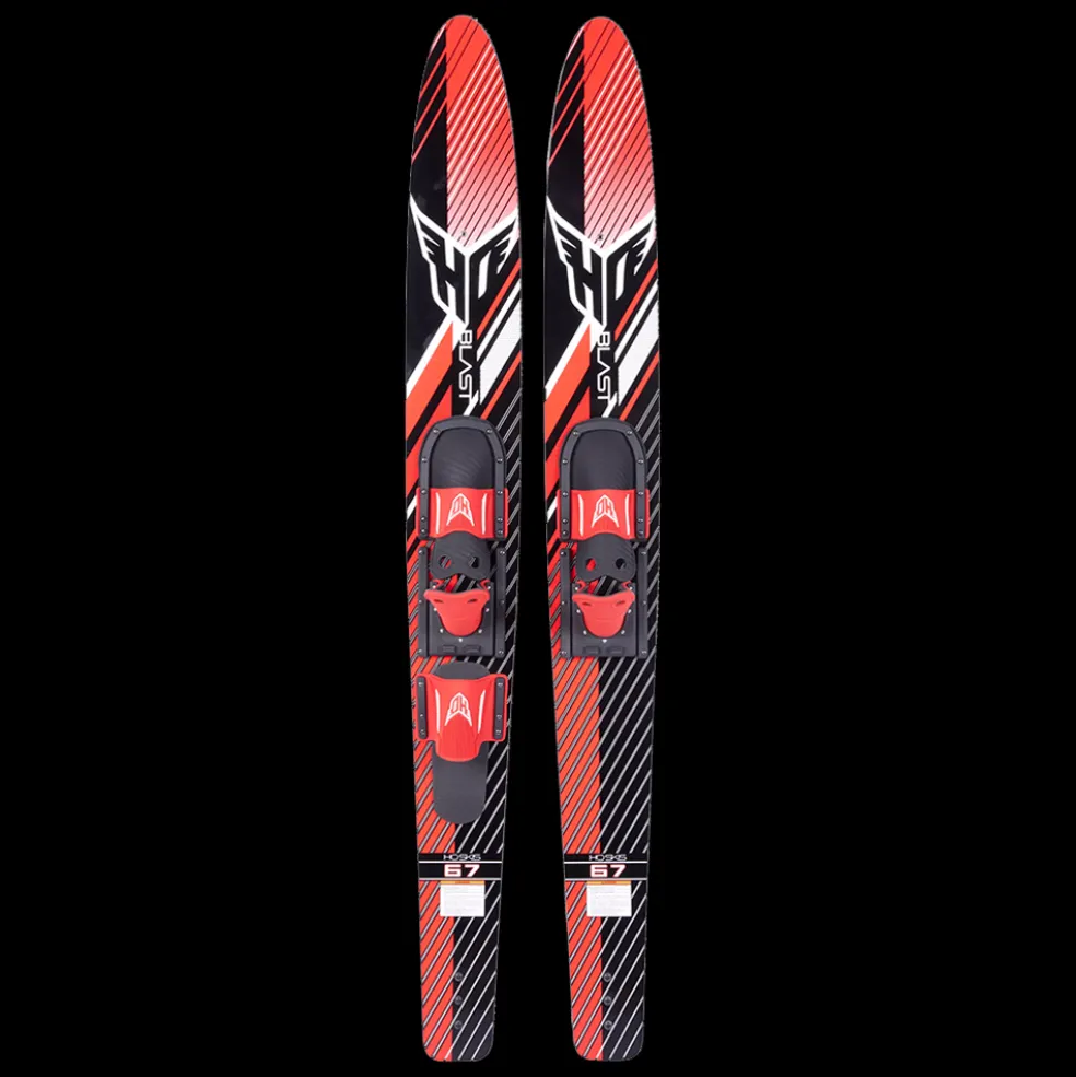 The HO Blast Combo Waterskis are a great way to have fun with the whole family at the lake. Their wide width construction make for easy starts and help skier progress. Combined with a V-Bottom design, the Blast Combos are stable and fun. You can also learn to drop a ski and progress to slalom skiing, as they’re equipped with a rear toe strap. Waterskiing is a great way to have fun with the whole family at the lake. They feature tip inserts compatible with the HO Trainer bar that keeps ski tips together, making starting and learning easy.