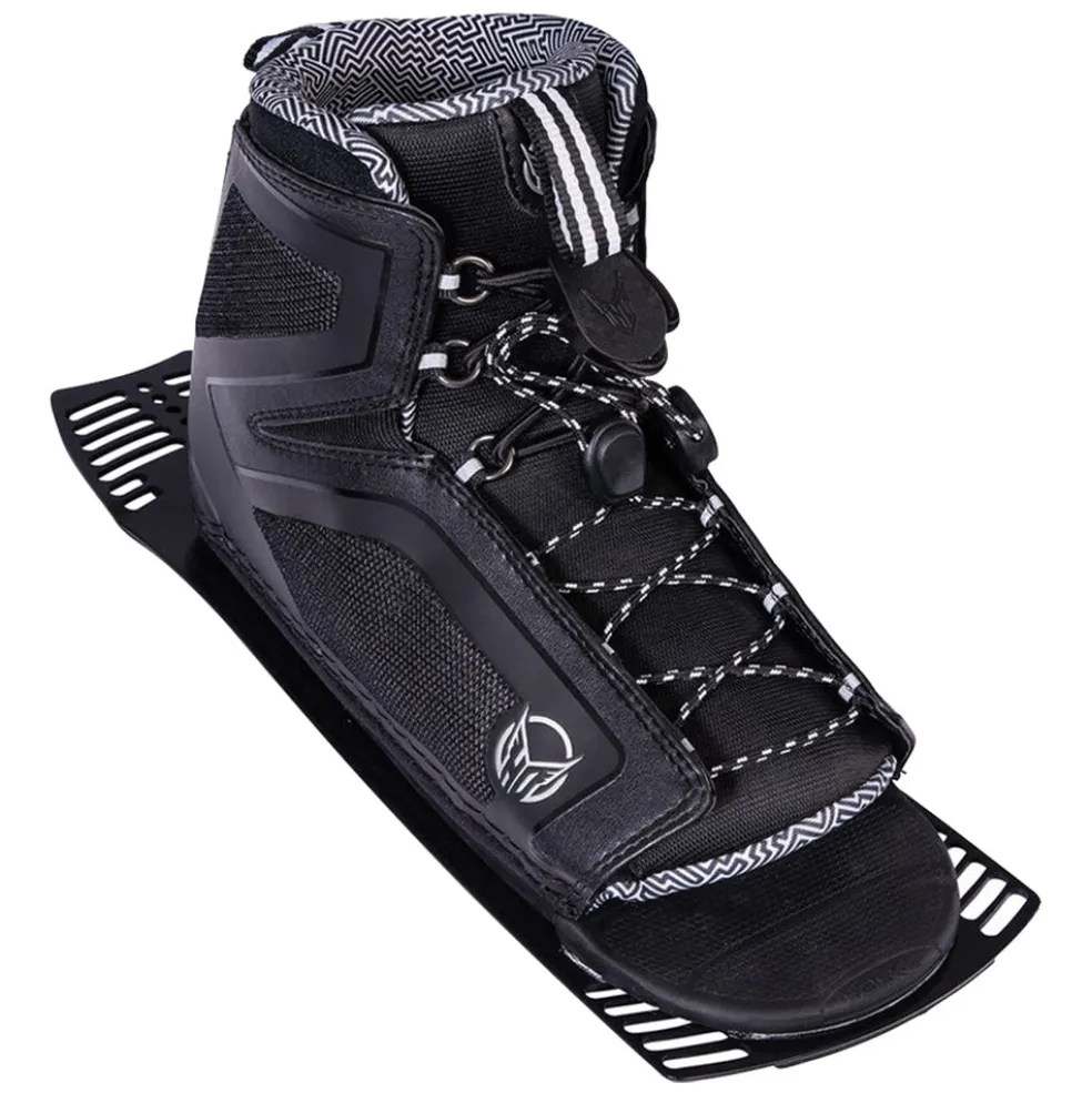 The HO Stance 110 Boot was designed for skiers looking for lateral flexibility, comfort, and forgiveness. The Stance 110 is built with a split-back upper cuff with lateral flex zones, allowing for amazing lateral flexibility. The SBR closed-cell foam liner delivers a snug yet comfy fit. The lightweight Stance 110 (only 1000 grams in the size 7-11 model) includes 15° of forward lean and 175mm tall cuff height. The dual lace zones allow for a personalized fit with independent upper and lower cuff tightening. Made with quality, high-strength 6061 grade aluminum plate with universal holes to fit virtually all ski brand insert patterns.