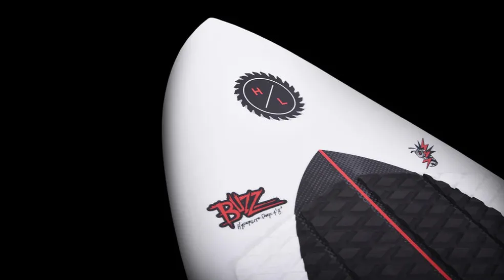 Construction: The Buzz is built with lightweight EPS core, Hyperlite’s DuraShell construction for durability, layered glass, and machined diamond EVA traction for solid grip underfoot. Monocoque build resists delamination, while the pin tail and rounded soft rails boost both speed and control. The tri-fin setup (two 3.5” Torq, one 1.5” Fish) lets you fine-tune performance for any mood.