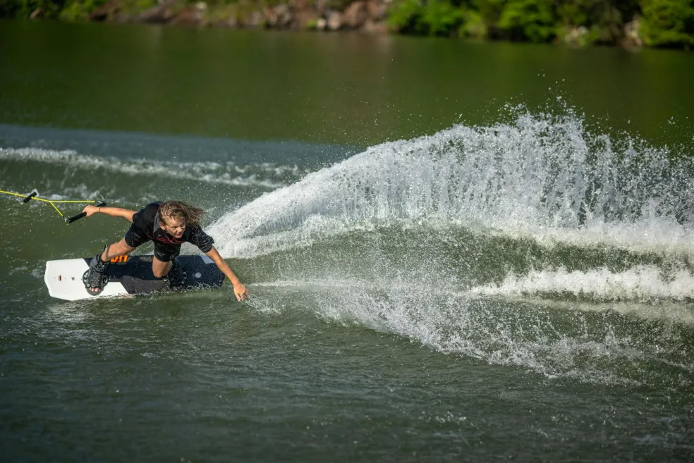 Creating a shape to take riders’ skills to the next level was the goal behind the State 2.0. Learning from other asymmetrical designs, we found that creating a shorter but more effective edge on a rider’s toe-side made hard to learn wake jumps a lot easier. This is because there is less rail to initiate when applying toe-side pressure. Once set, the smoother toe-side transition is then held by the State 2.0’s thinner profile molded-in fins, creating less drag and a better release off the top of the wake. Subtle Molded-In Toe-Side Footbed Risers were also added to help a rider create more leverage when pressure is applied. The longer, more traditional heel-side edge compliments this asymmetrical design by allowing the natural body position of a rider to generate stability and speed into the wake without a loss of pop due to reduced surface area. The State 2.0 has been tested and proven to be the best choice for a rider looking to master the foundations of wakeboarding.