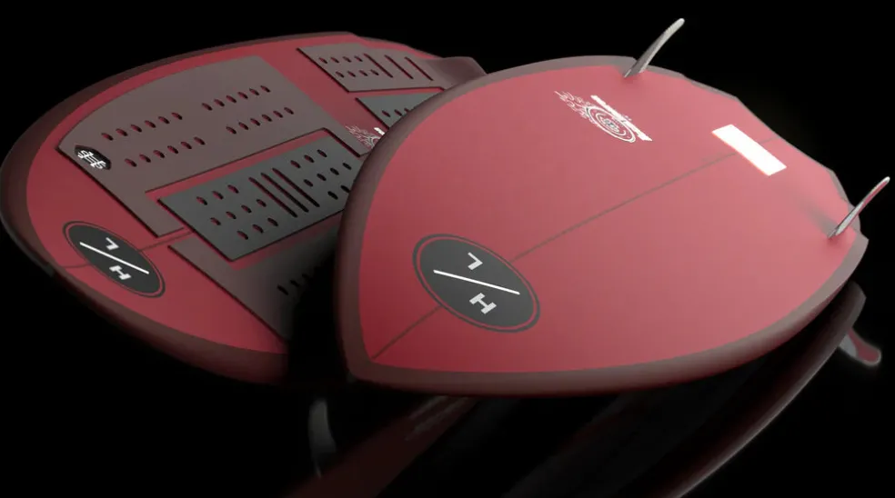 The Accelerator is a modern take on a classic board design, known for its reliability over the years. This high-performance twin fin board excels in and out of turns, thanks to its wide swallow tail that makes boosting above the lip effortless. Featuring double wings on each rail, the Accelerator provides added grip, ensuring stability in the twin fin setup. The board’s ample volume in the tail and under the front foot delivers impressive cruising speed, while the modern entry rocker and single double concave offer controlled acceleration. It’s lightweight yet incredibly strong, allowing for hyper-responsive maneuvers—just think it, and it happens!