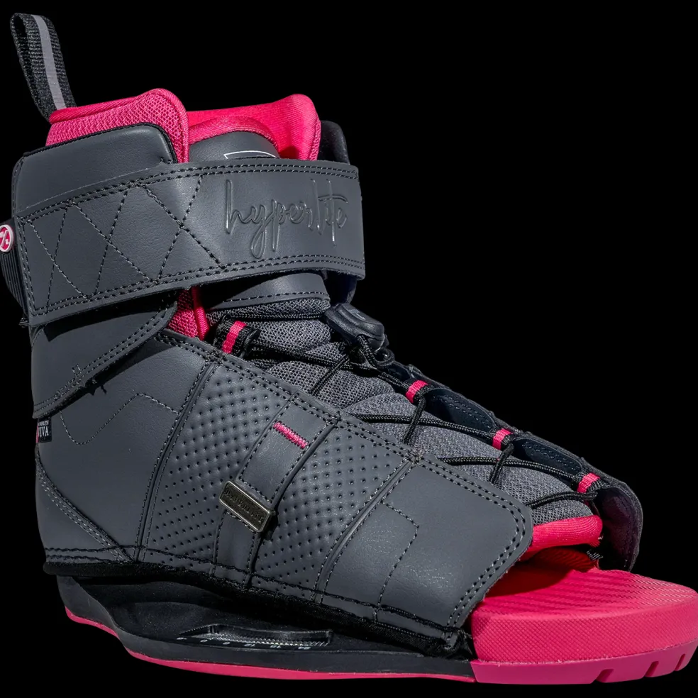 Ladies rejoice with the Viva and the customizable feel and support it delivers. Thanks to the quick cinch lace zone and the upper ankle Velcro Closure, you can dial this binding in to meet your needs while shredding the wake. Affix the Viva on any wakeboard with our 6” Universal Mounting System and feel free to share the binding with your friends as the open toe design accommodates multiple size feet.