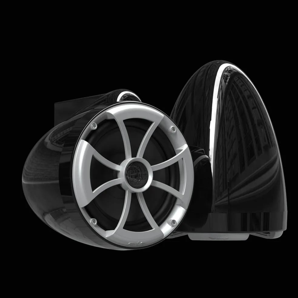 The ICON Series is an extreme performance tower speaker designed for those that crave a full mid bass sound and clean detailed highs in a small form factor. The ICON series are designed for full sound in and around the boat and wake surfing range. The ICON 8 utilizes an 8 inch continuous cone mid bass driver with a grille mounted pure 1 inch titanium tweeter in a smaller form factor housing size usually found with smaller 6.5 inch speakers. Supreme functionality with multiple universal clamp configurations.